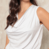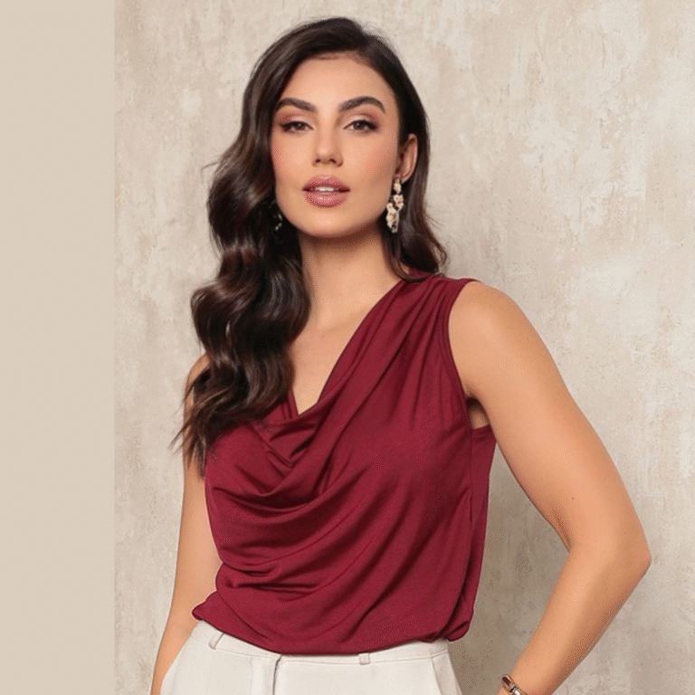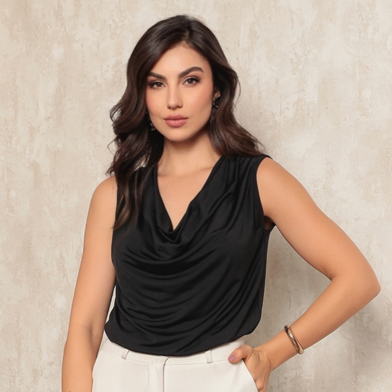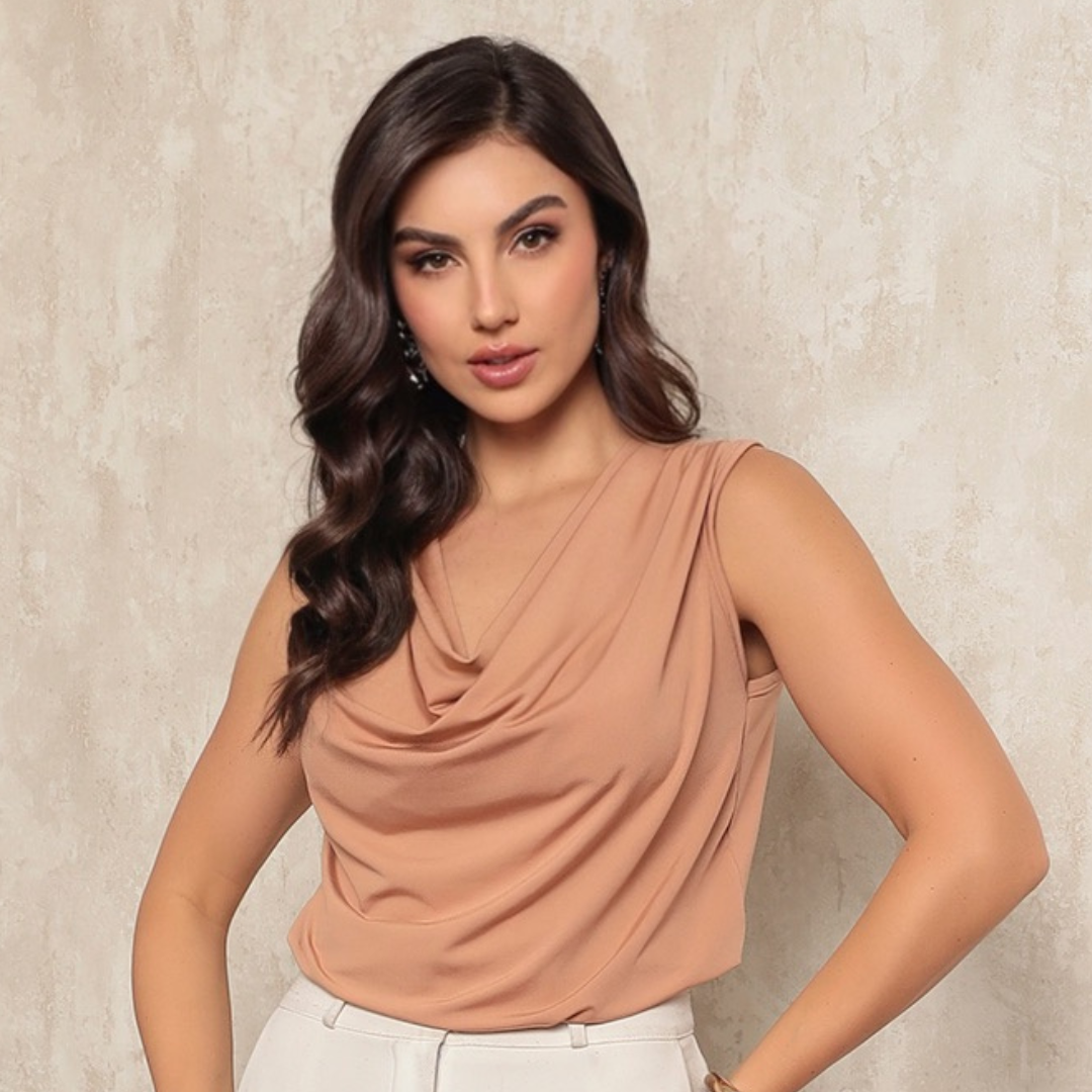 A Blusa Regata Feminina Gola Drapeada Alça Ampla em Suplex Elegante é confeccionada em tecido suplex com elastano, proporcionando conforto, elasticidade e caimento perfeito no corpo. O detalhe da gola drapeada acrescenta sofisticação e modernidade, enquanto o elástico na barra garante melhor ajuste e valoriza a silhueta. Uma peça versátil para compor desde looks casuais até produções mais elegantes.