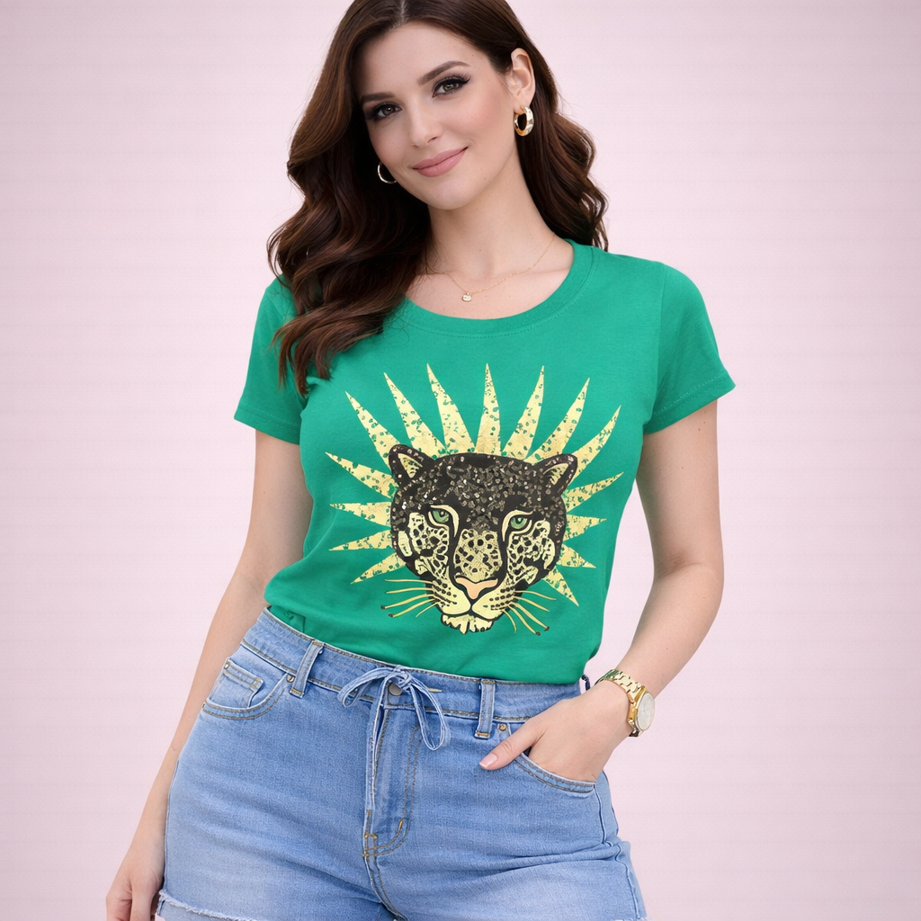 A Blusa Viscolycra Onça oferece conforto e estilo. Macia, elástica e versátil, adapta-se a várias ocasiões e tamanhos, elevando seu visual e confiança.