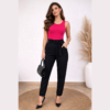 A calça Catarina de cós alto, com elástico na cintura, contém passador de cinto e cordão no mesmo tecido. Linho é um tecido natural feito a partir da planta de linho. Ele é conhecido por sua durabilidade, resistência e suavidade.